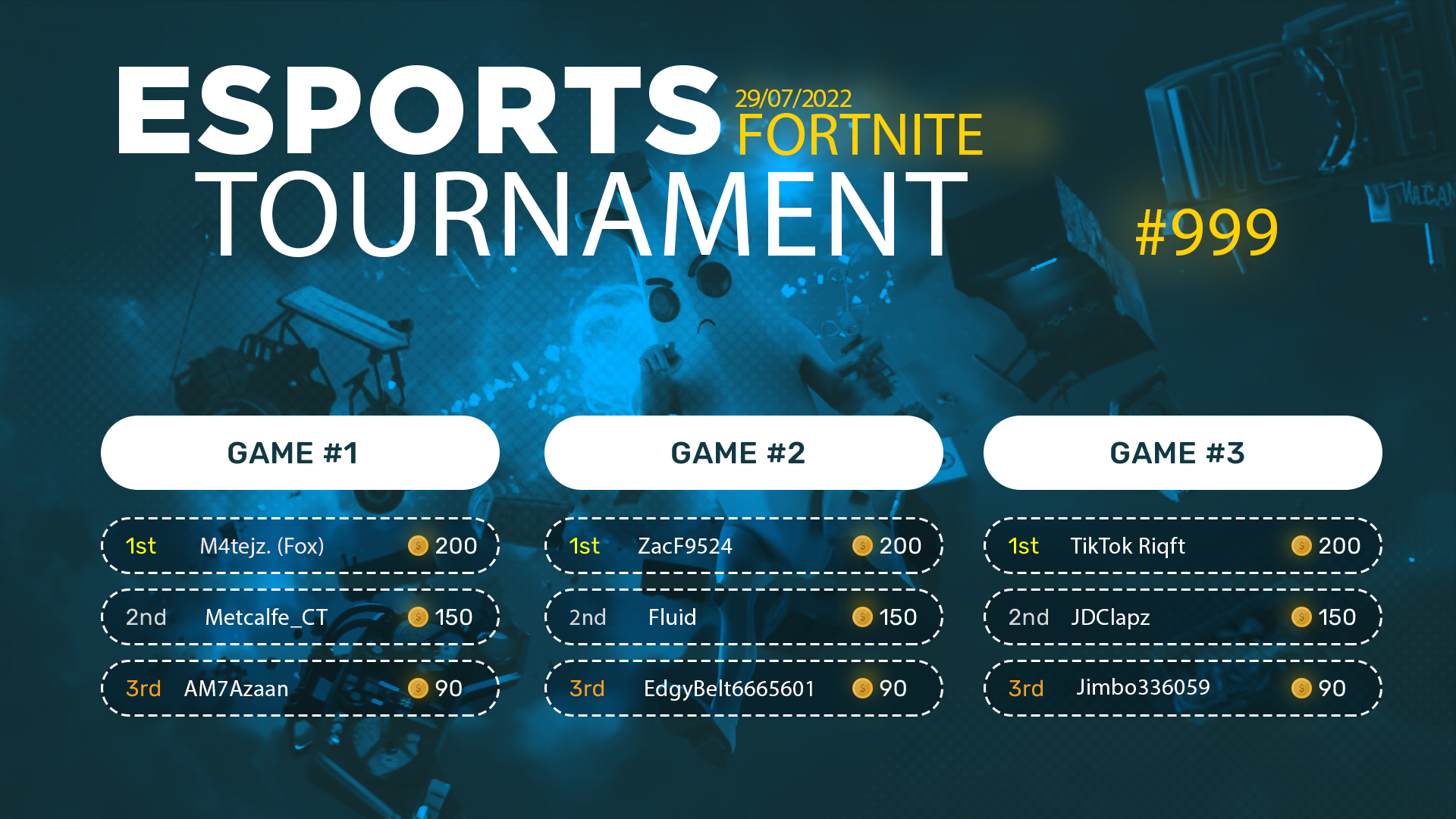 Esports Tournament #999- Fortnite - 29/07/2022